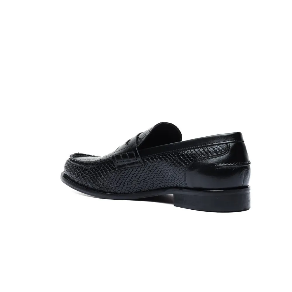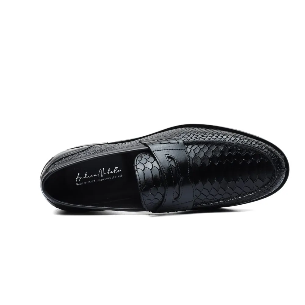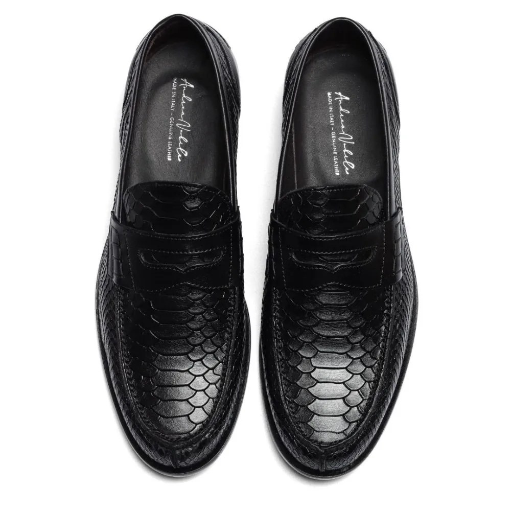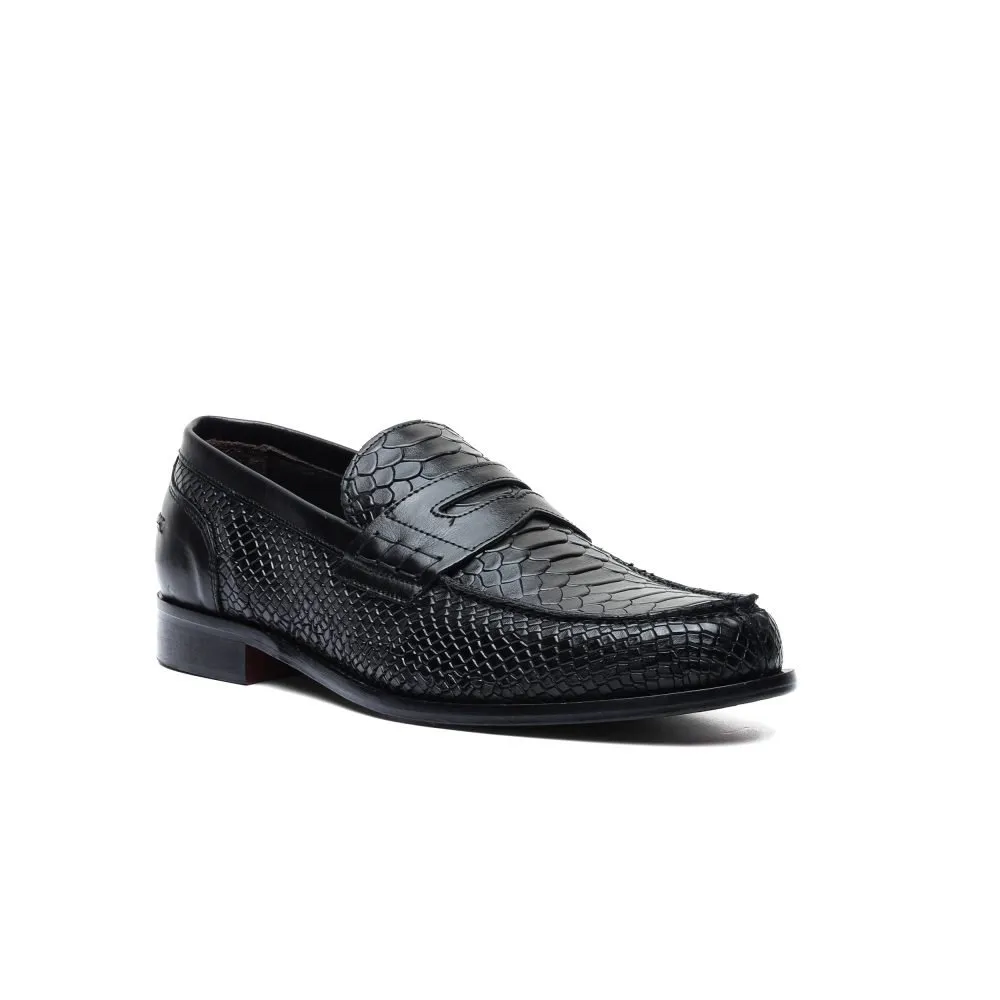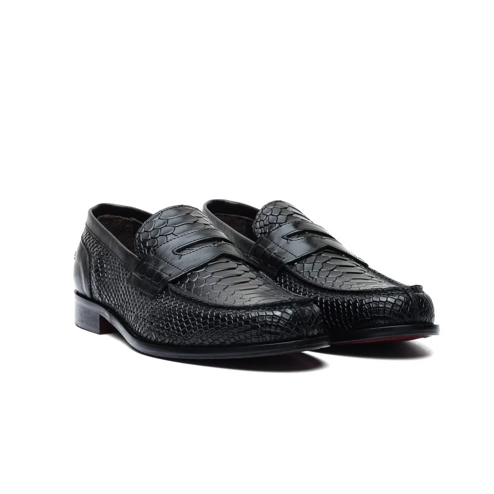 Penny Loafer in Black Leather with Anaconda Print