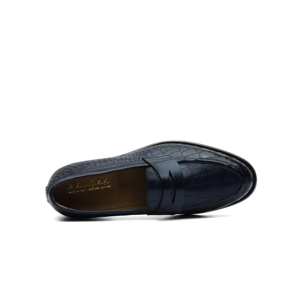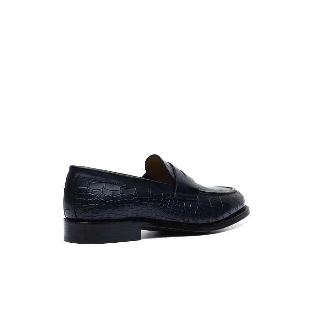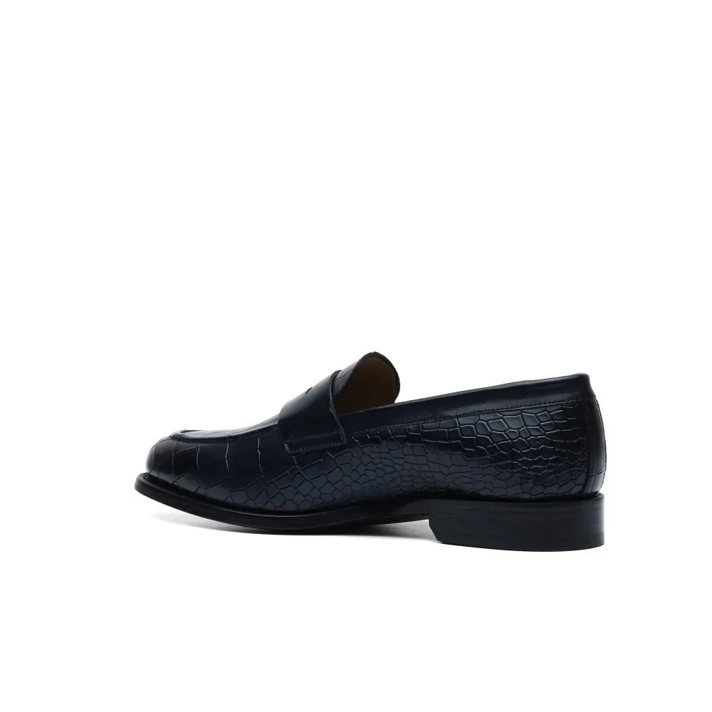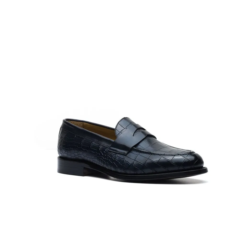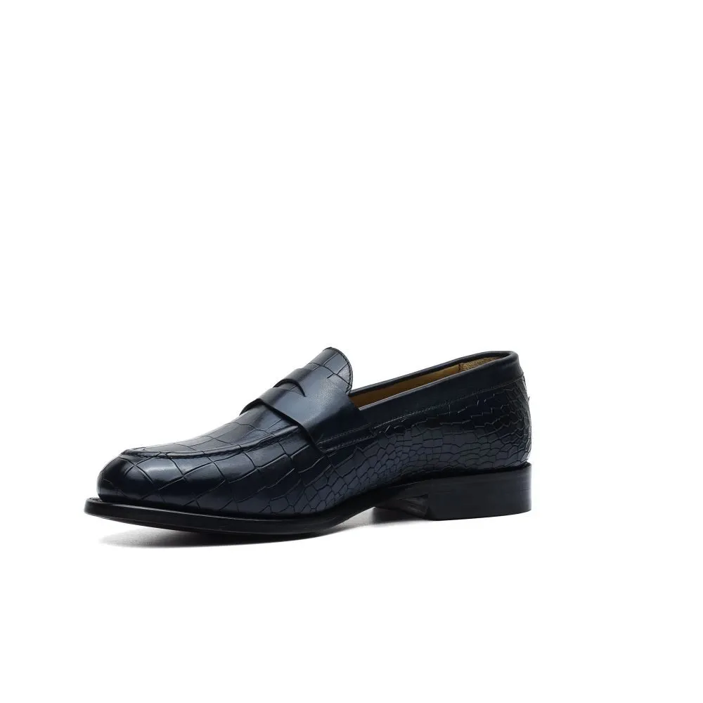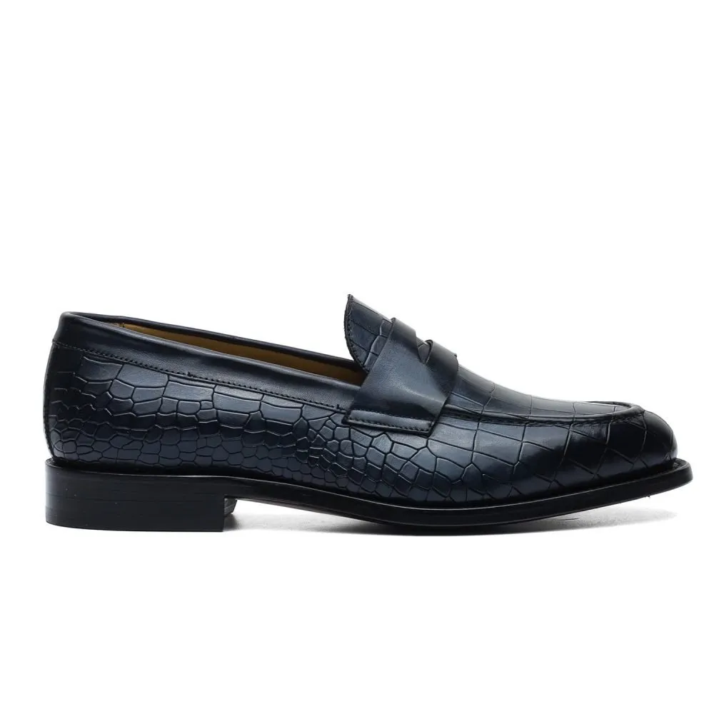 Calzature artigianali Made in Italy modello Penny Loafer o più comunemente conosciute come “Mocassini Penny”, caratterizzate dalla stampa coccodrillo su tutta la tomaia.