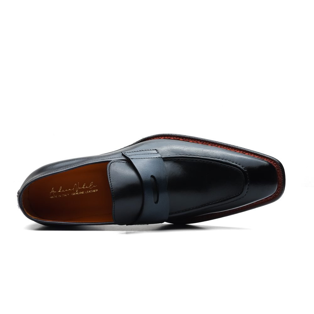 Calzatura artigianale Made in Italy modello Penny Loafer o più comunemente conosciuta come “Mocassino Penny” dal design senza tempo.