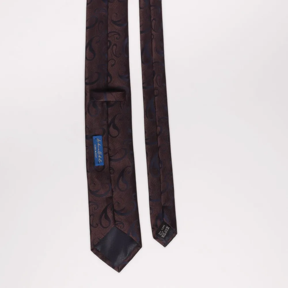 La cravatta Andrea Nobile è interamente artigianale e si distingue per la seta stampata a mano e il taglio singolo del tessuto. Caratterizzata da colori brillanti e fantasie eleganti, presenta una fodera in tessuto. Modello a 3 pieghe con passante interno.