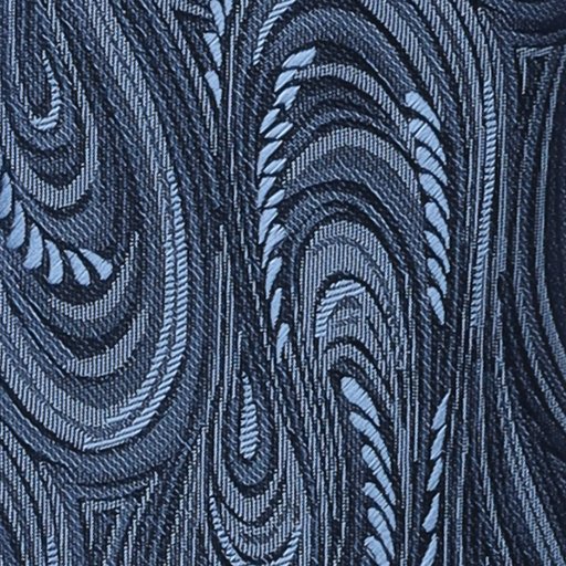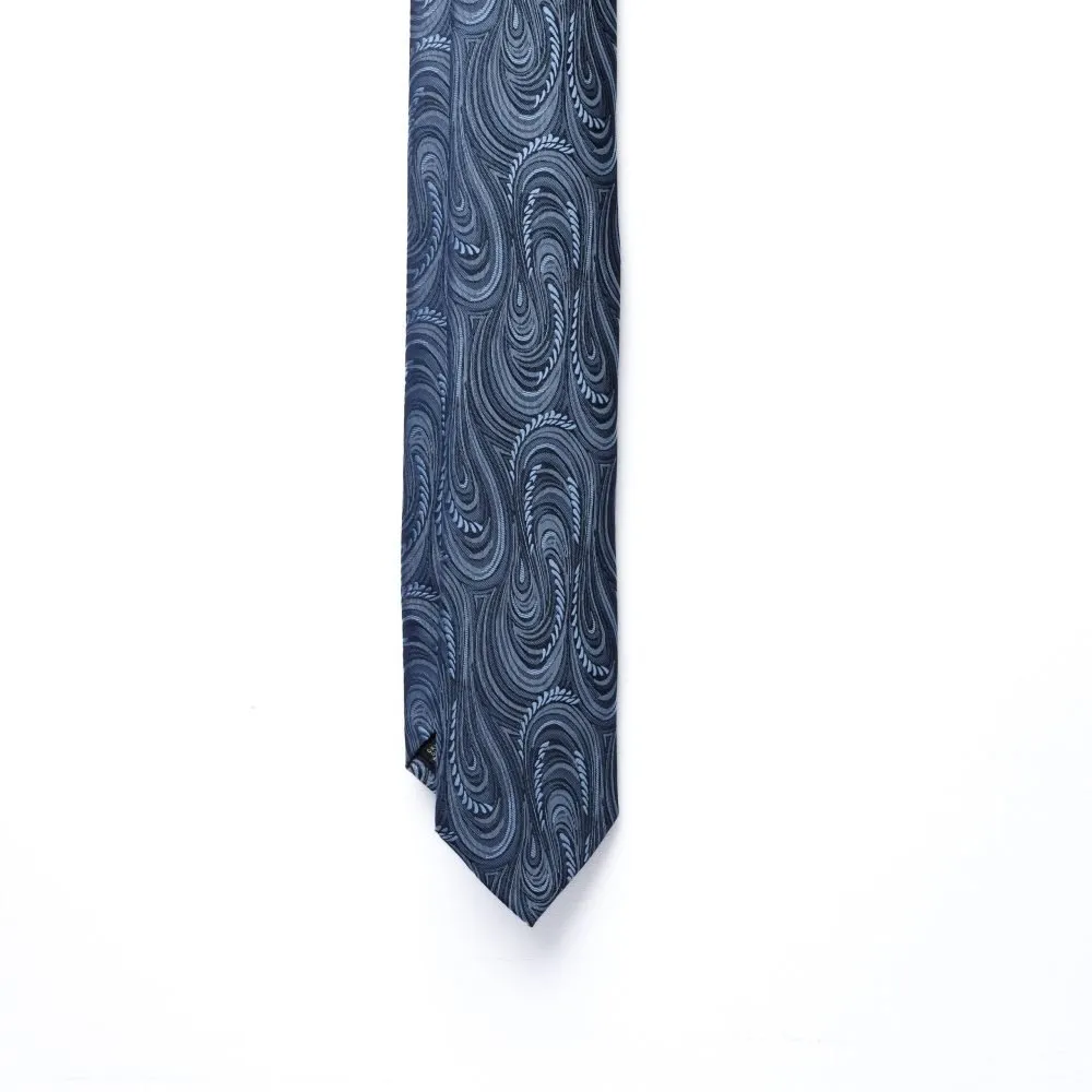 Il motivo ondulato in tonalità blu e azzurro conferisce profondità e movimento, mantenendo un’eleganza sobria e decisa.