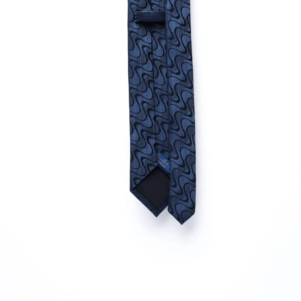 Il motivo ondulato in tonalità di electric blu conferisce profondità e movimento, mantenendo un’eleganza sobria e decisa.