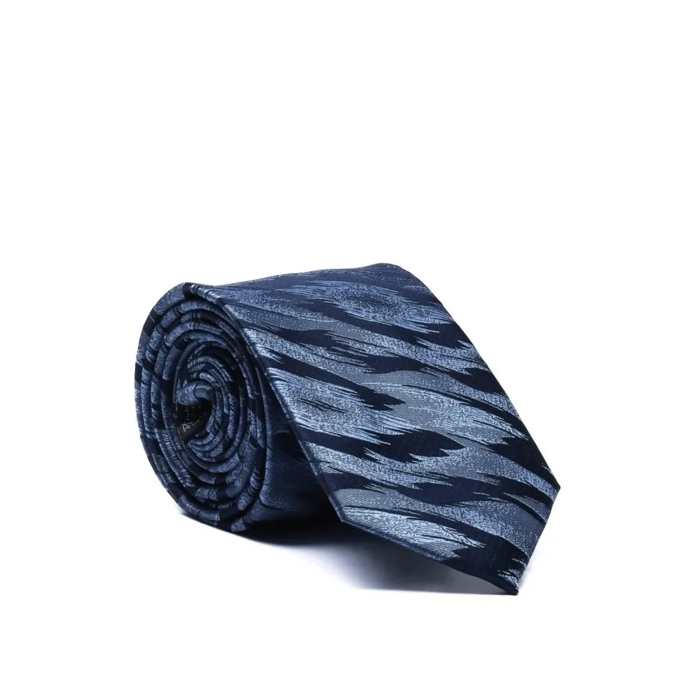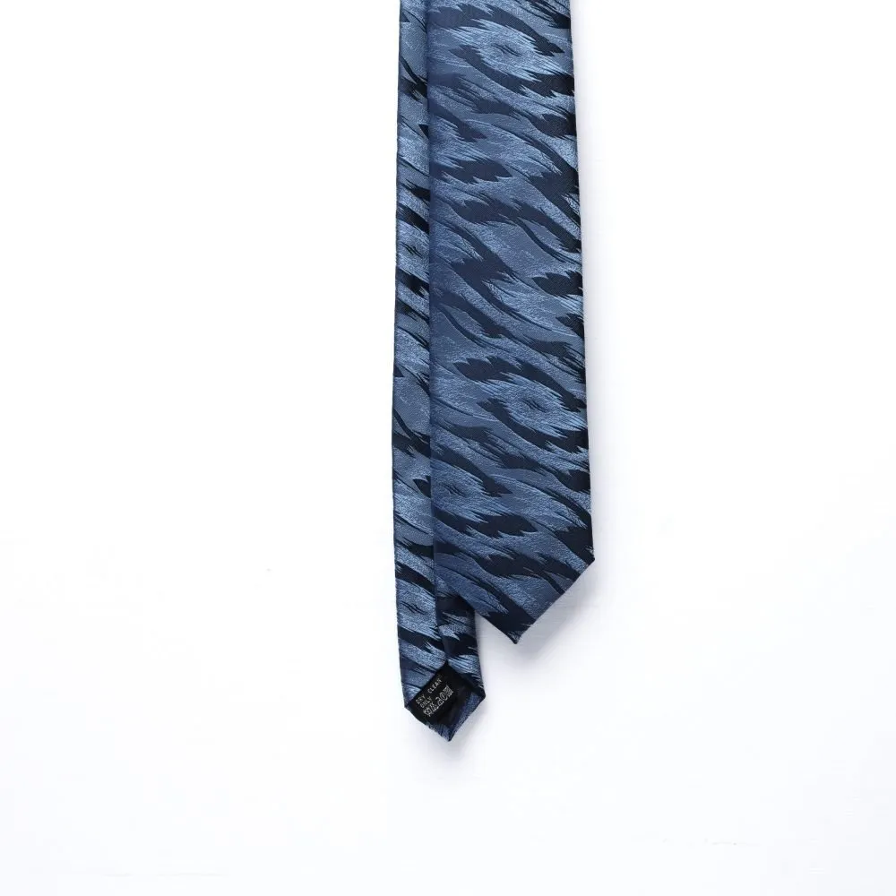 Cravatta artigianale Andrea Nobile realizzata in pura seta italiana con fantasia wild nei toni del azzurro e blu.