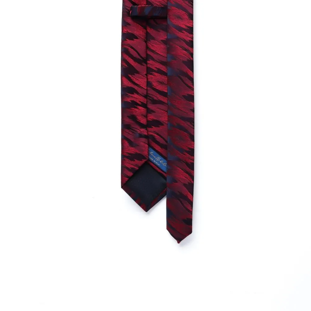 Cravatta artigianale Andrea Nobile realizzata in pura seta italiana con fantasia wild nei toni del bordeaux e argento.