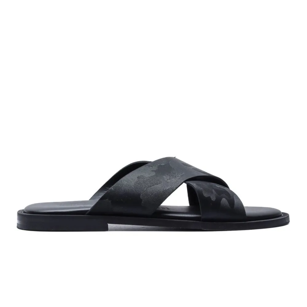 Slider artigianale made in Italy con fasce incrociate in texture saffiano.