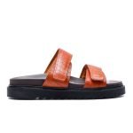 Realizzata in pelle con stampa effetto coccodrillo nel colore arancio , questa slider si distingue per le sue fasce regolabili con chiusura a strappo nascosta, pensate per offrire una calzata personalizzata senza rinunciare allo stile.