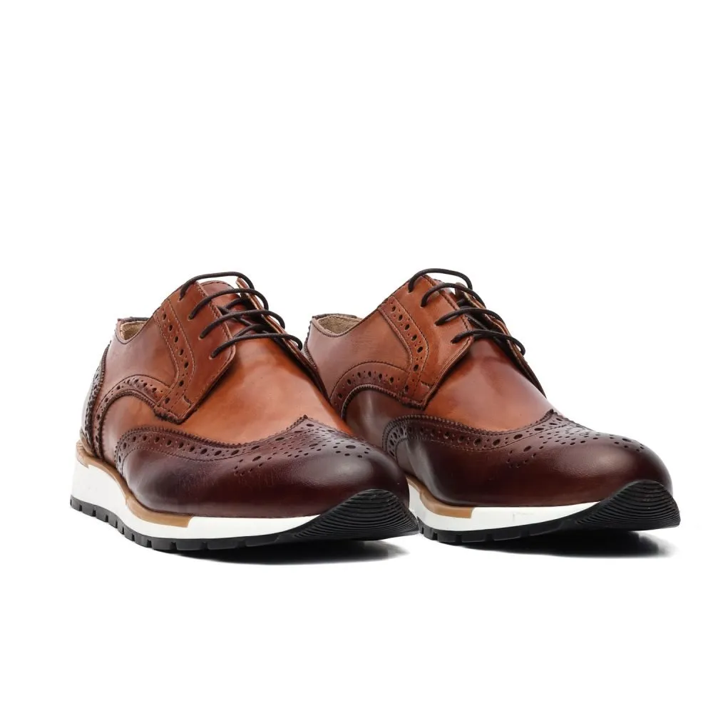 Scarpa artigianale made in Italy modello Sneakers stringata, caratterizzata dal disegno brogue lungo tutta la tomaia.