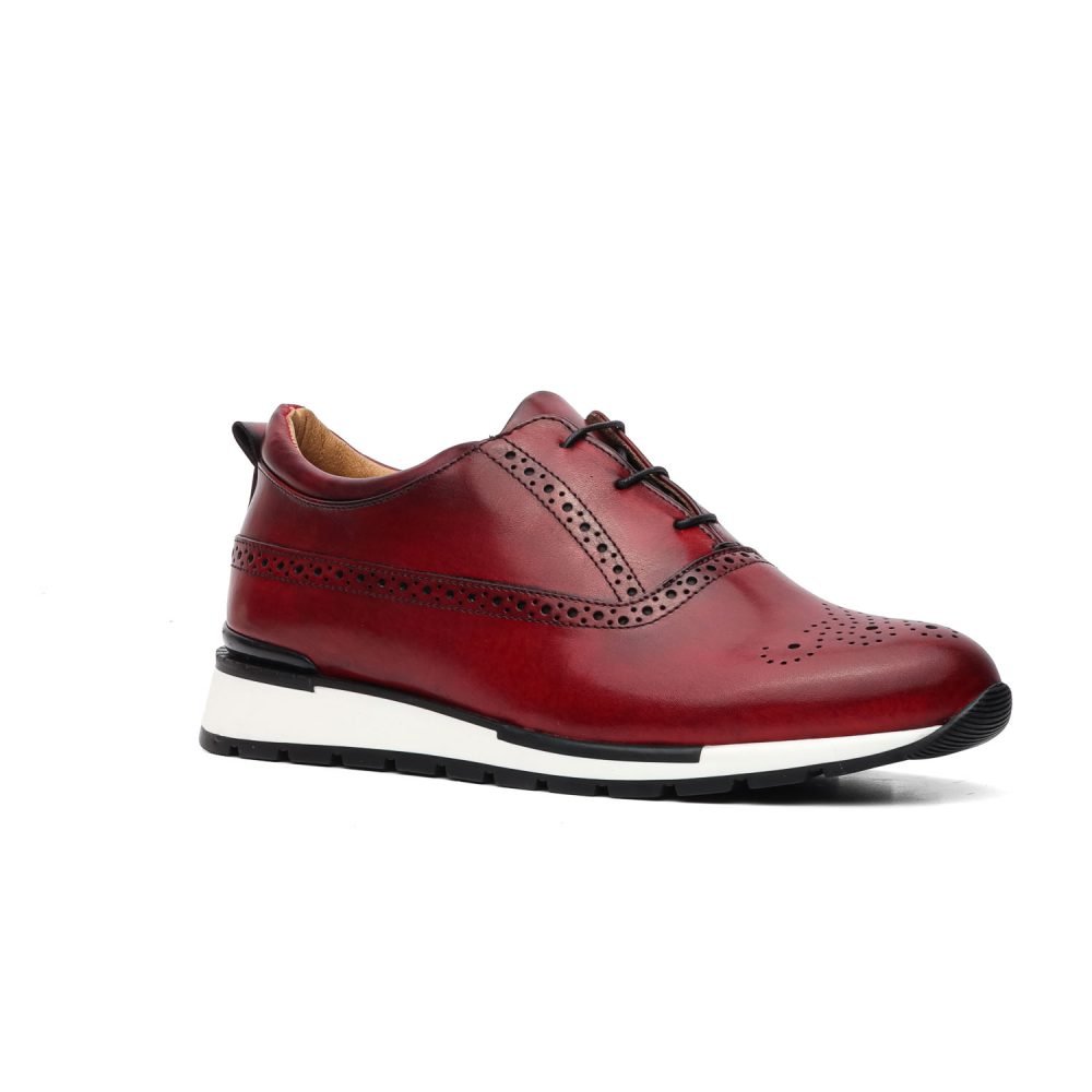 Scarpe artigianali Made in Italy stringate modello Sneakers, caratterizzate dal disegno full-brogue su tutta la tomaia.