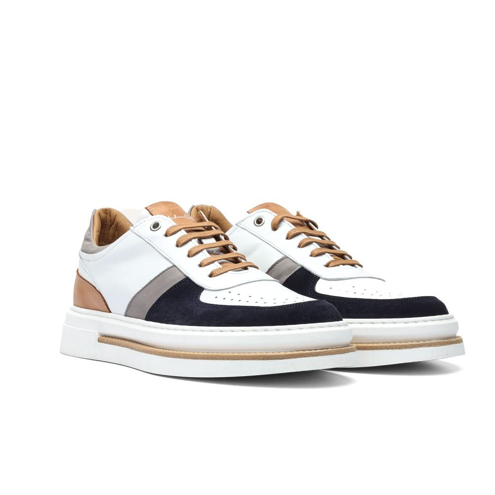 Vera pelleCalzature artigianali Made in Italy modello Sneaker dall’esclusiva suola Hybrid II che attraverso l’innesto di un guardolo in pieno stile classico alla suola in gomma leggermente oversize ne testimonia l’alto livello manifatturiero unito all’evoluzione stilistica del Brand.