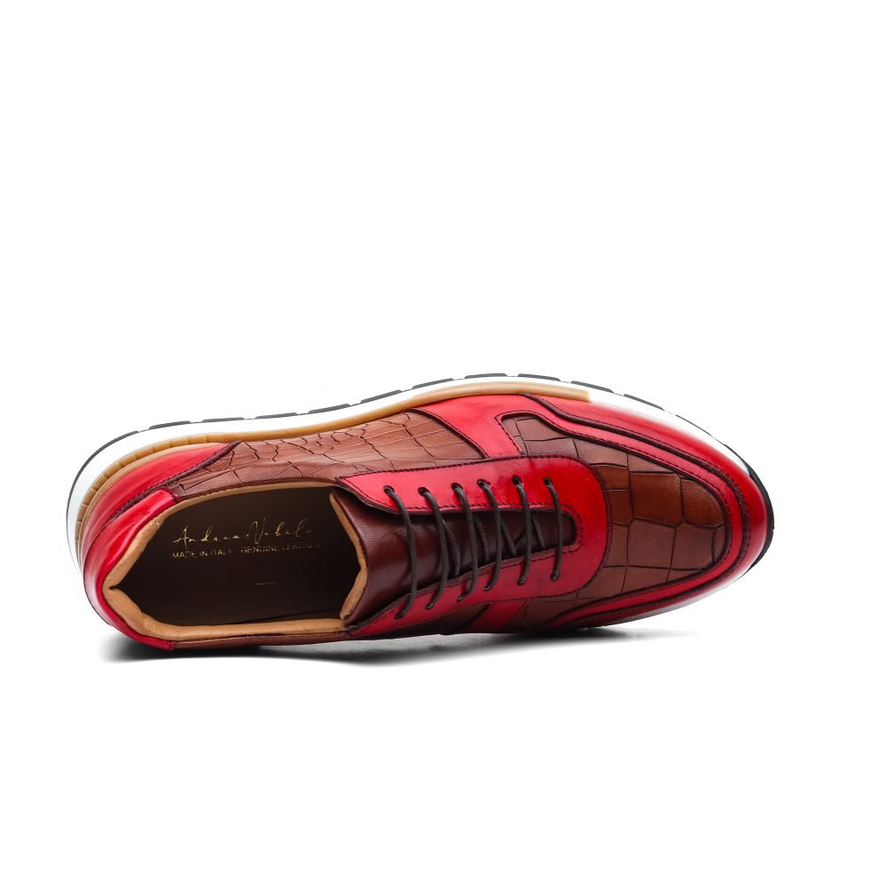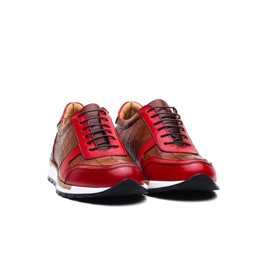 Sneakers In Pelle Rossa e Marrone Con Stampa Coccodrillo