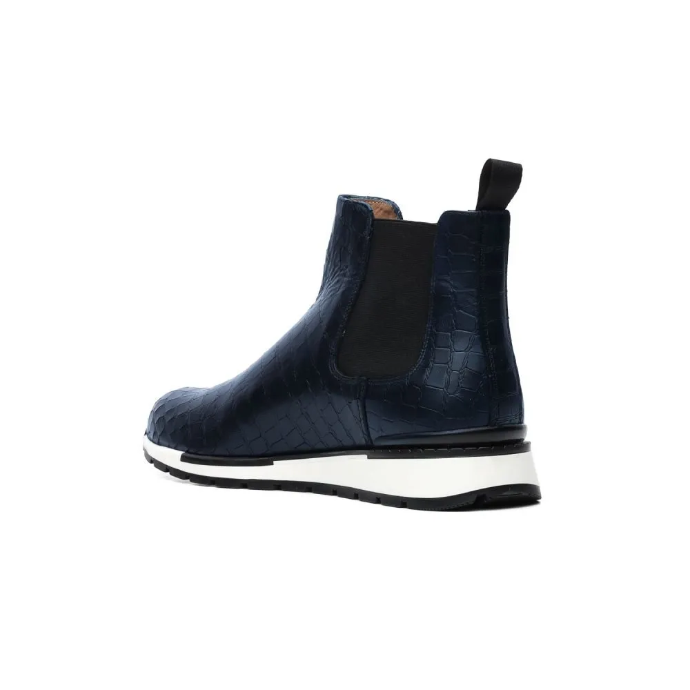 Stivaletti Chelsea Boots blu con stampa Coccodrillo