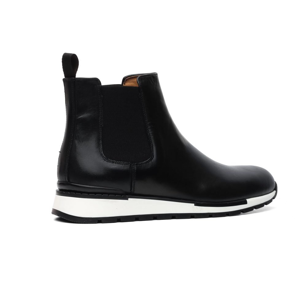 Realizzate in pelle di vitello colore nero, riportano i caratteristici elastici laterali che insieme alla linguetta superiore ne conferiscono un’estrema praticità nella calzata.