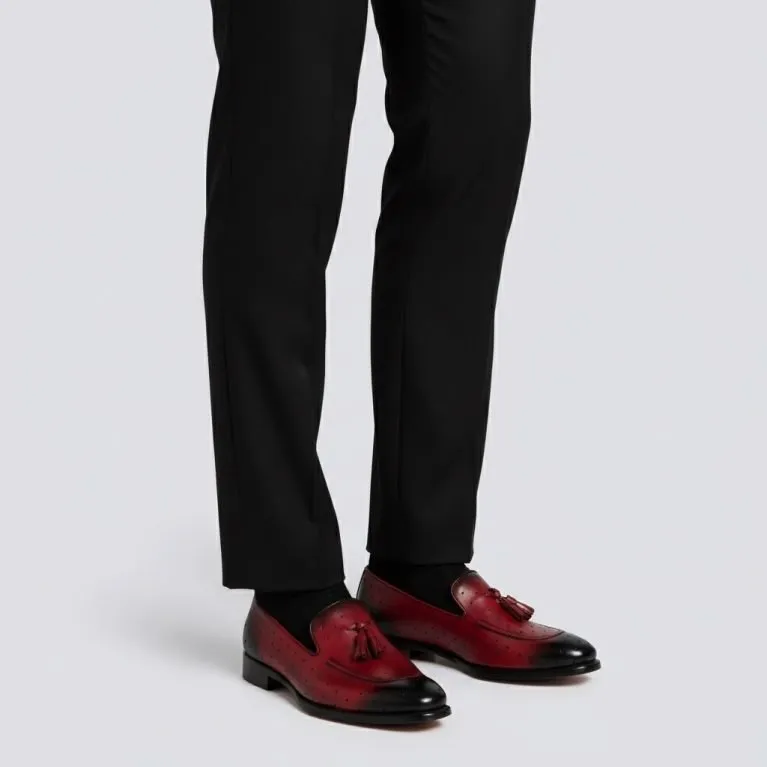 Calzature artigianali Made in Italy modello Tassel Loafer, conosciute anche come “Mocassino con Nappine”, rese particolari dalle cuciture in rilievo sulla parte superiore della tomaia, evidenziando l’artigianalità.