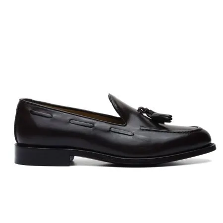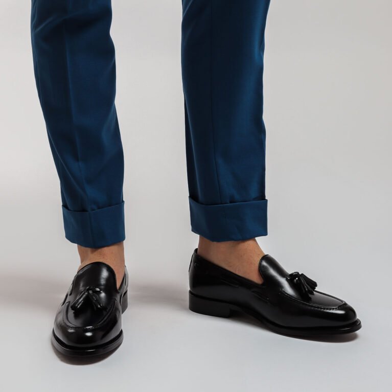 Calzature artigianali Made in Italy modello Tassel Loafer, conosciute anche come “Mocassino con Nappine”, rese particolari dalle cuciture in rilievo sulla parte superiore della tomaia, evidenziando l’artigianalità.