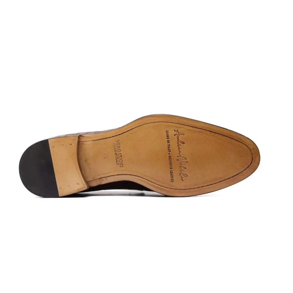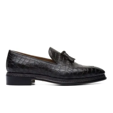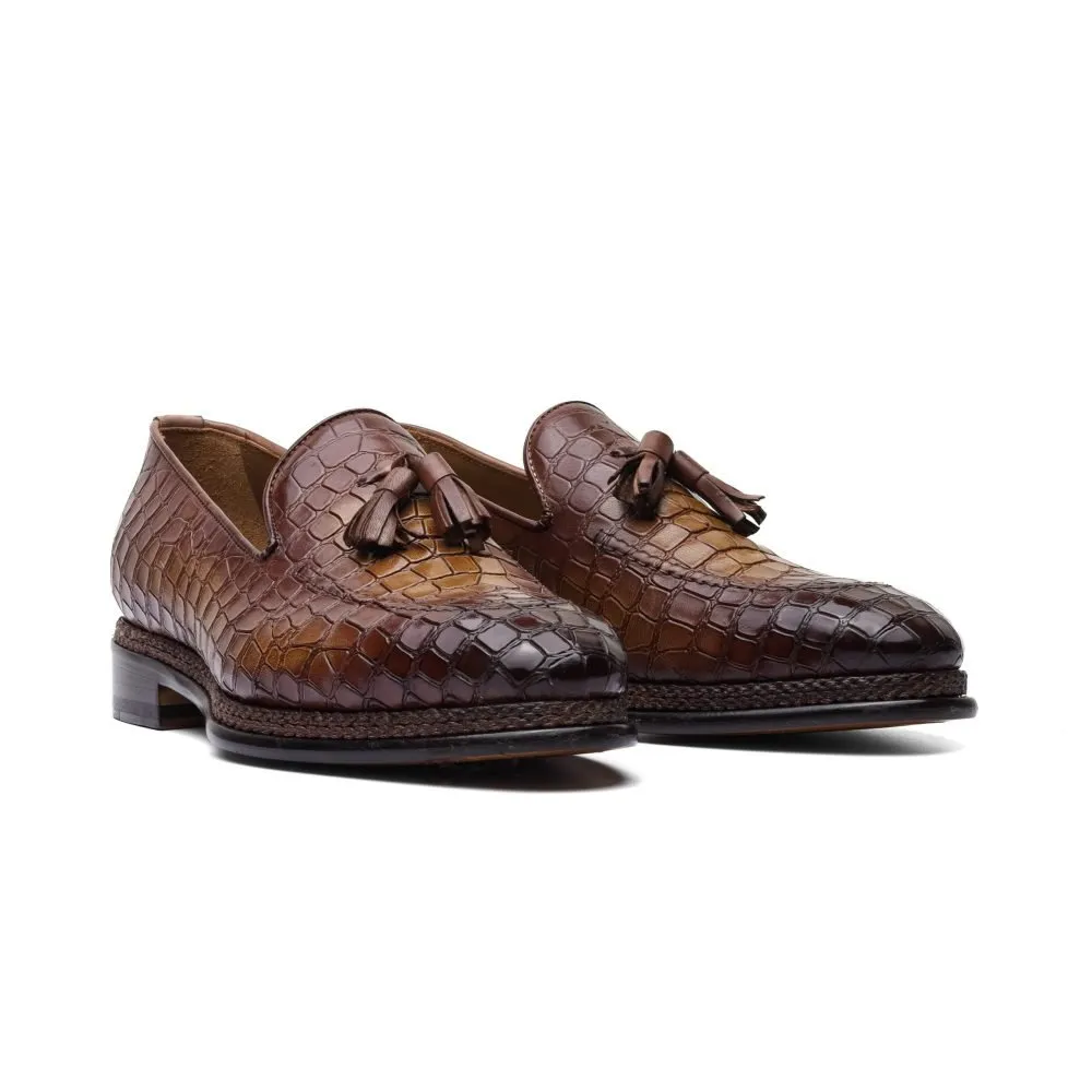 Tassel Loafers In Crocodile Saphir Leather Brown