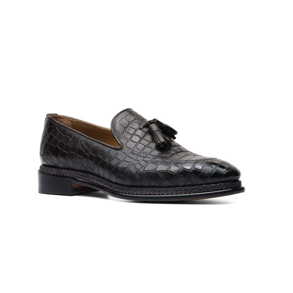 Stampa CoccodrilloCalzatura artigianale Made in Italy modello Tassel Loafer o più comunemente conosciuta come “Mocassino con Nappine” dal design senza tempo.