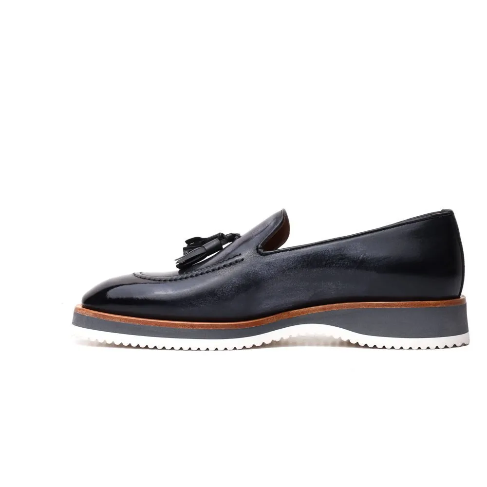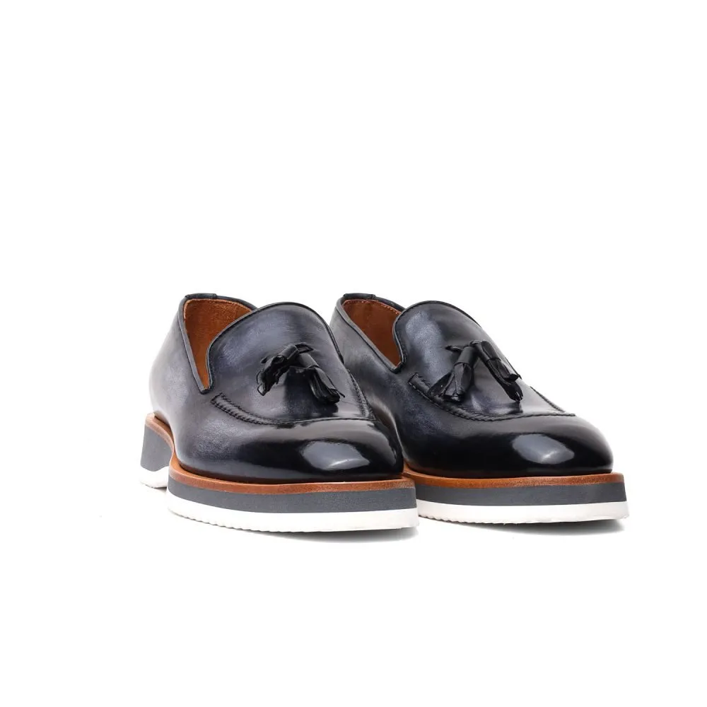 Calzatura artigianale made in Italy modello Tassel Loafer o più comunemente chiamata ”Mocassino con nappine”.