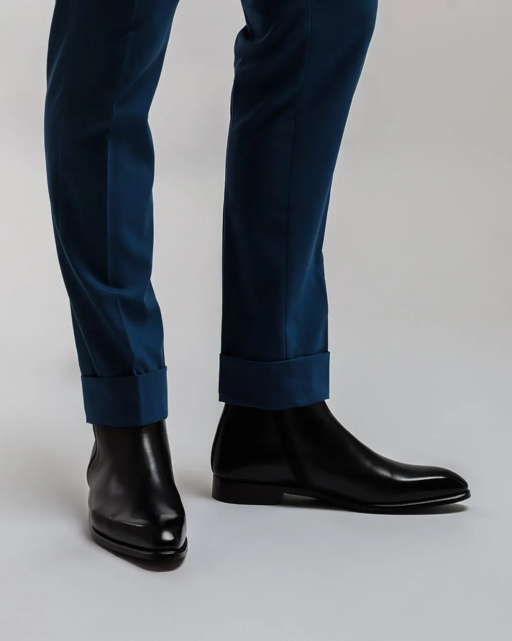 Realizzate in pelle di vitello tinta a mano nel colore nero. Sono dotate di un comodo occhiello sul retro del gambale che ti aiuterà a indossarle e toglierle in tutta tranquillità.