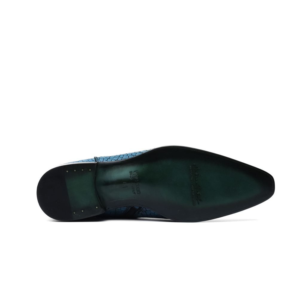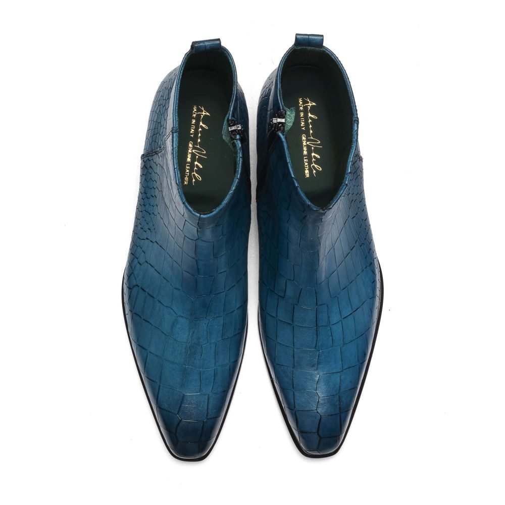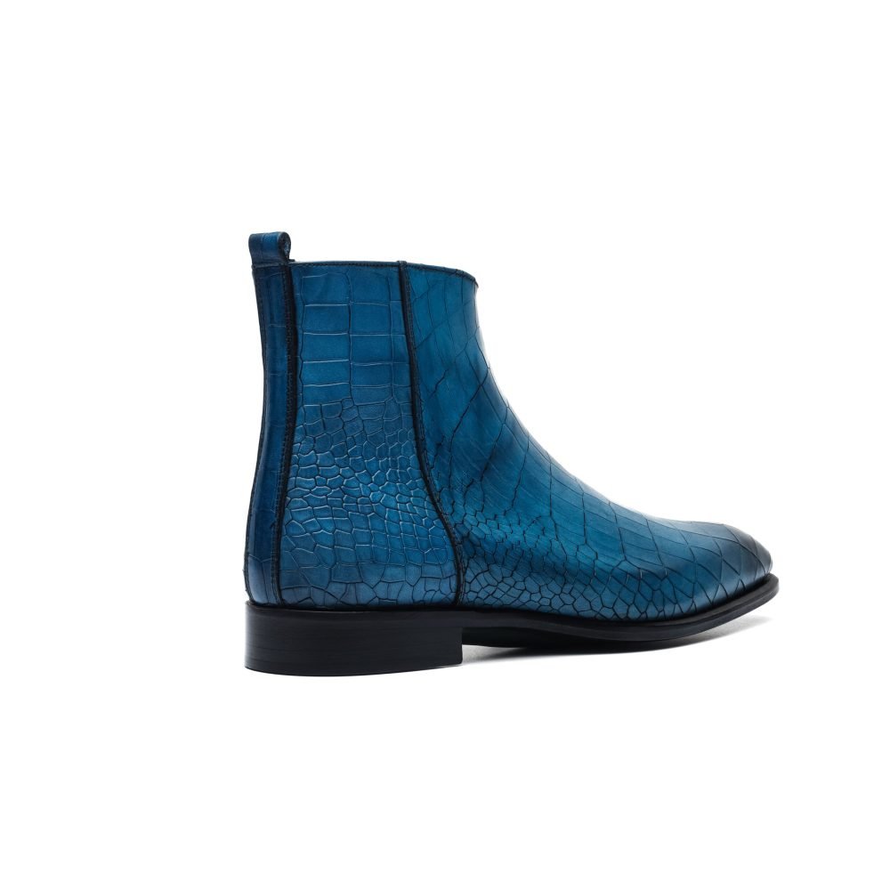 Calzature artigianali made in Italy modello Stivaletti con zip. caratterizzati dalla stampa coccodrillo su tutta la tomaia.
