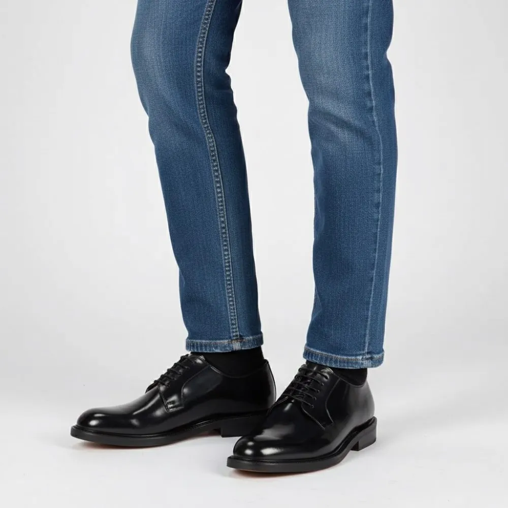 Učinek brušenega zrcalaRočno izdelan čevelj, izdelan v Italiji, model Derby z vezalkami.