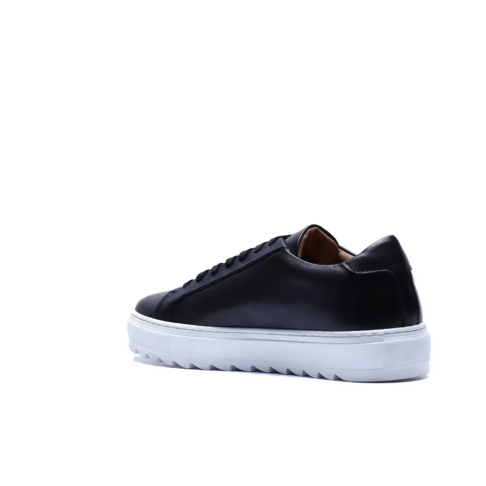 Ročno barvanoSuperga, izdelana v Italiji, iz pravega črnega usnja, ročno barvanega v naravnih odtenkih, z belim podplatom z vzorcem "morskih zob", ki silhueti doda dinamiko in osebnost.