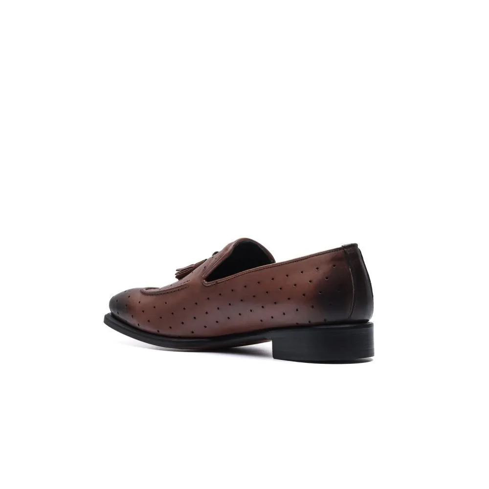 Handcrafted, Dijieun di Italia, sapatu Tassel Loafer, ogé katelah "Moccasins kalawan Tassels," dijieun unik ku perforations dilarapkeun sapanjang sakabéh luhur, panyorot craftsmanship maranéhanana.