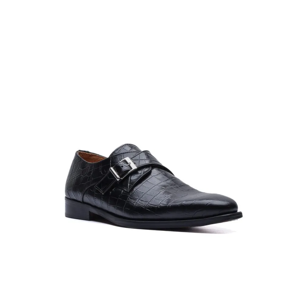 Footwear ti a ṣe ni ọwọ Ṣe ni Ilu Italia, awoṣe Monk Strap tabi ti a tun mọ ni “igi ẹyọkan”, ti a ṣe afihan nipasẹ titẹ ipa-ipa ooni lori gbogbo oke.